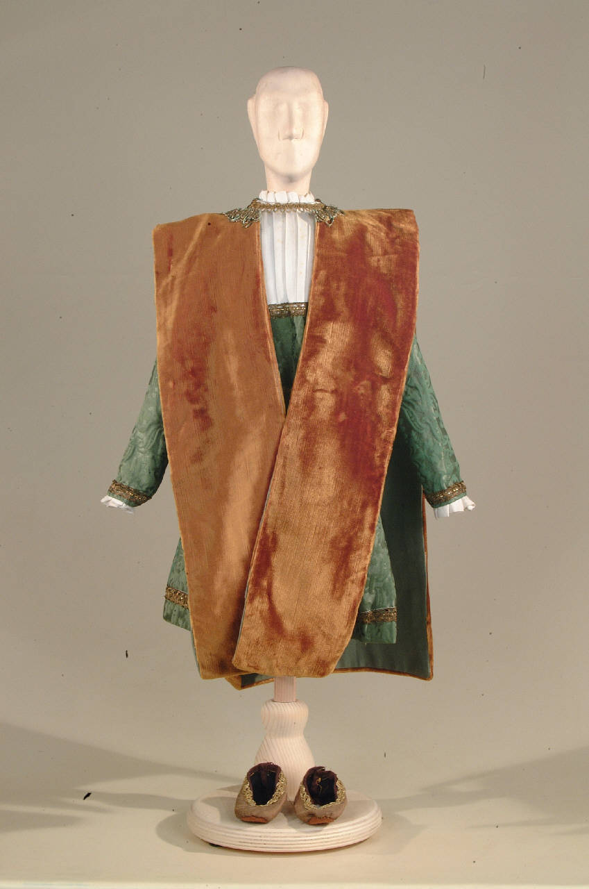 Costume di notabile del '400 costituito da veste, cintura, sopravveste, scarpe