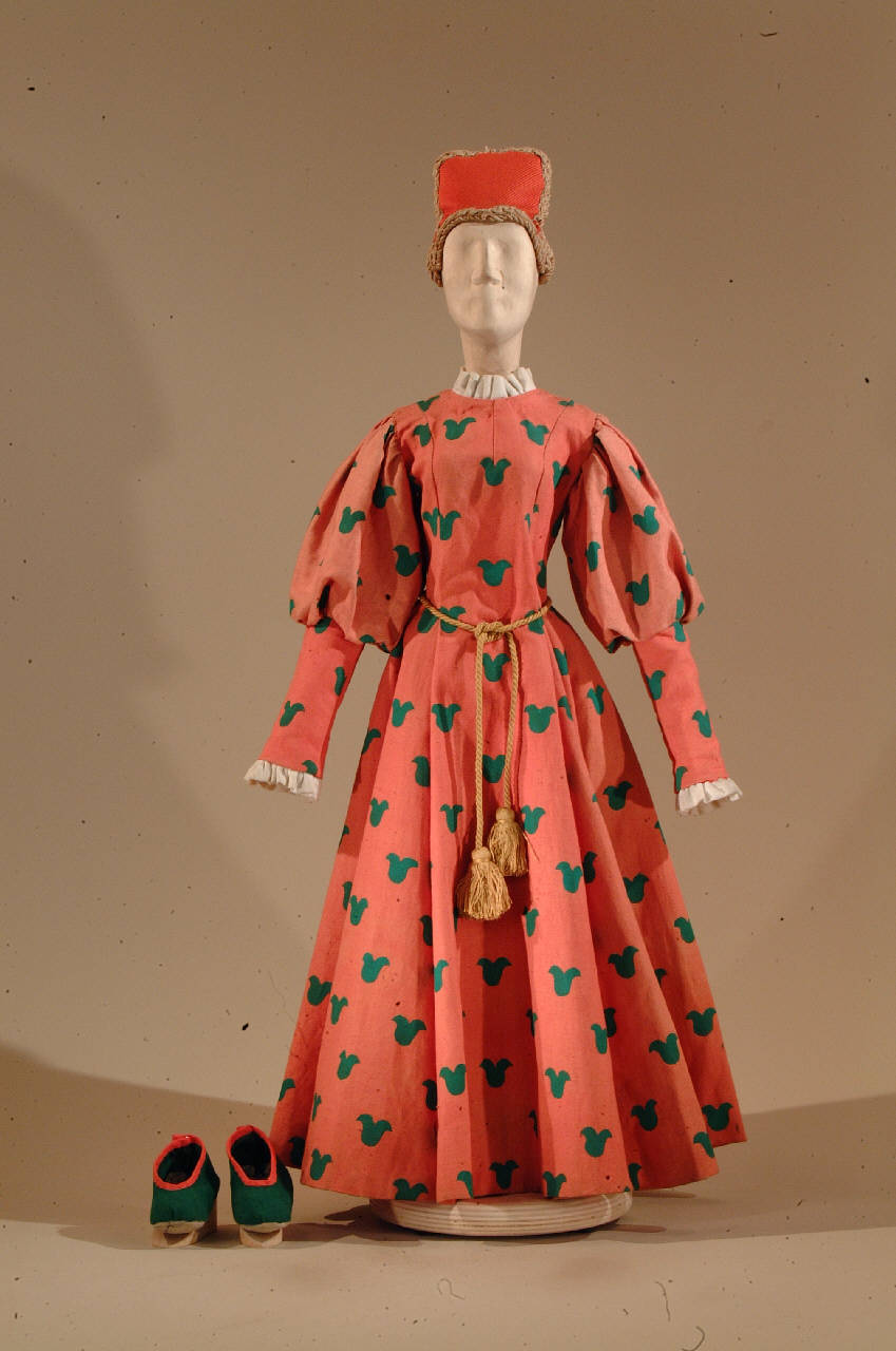 Costume per popolana di foggia rinascimentale composto da veste, scarpe e cappello