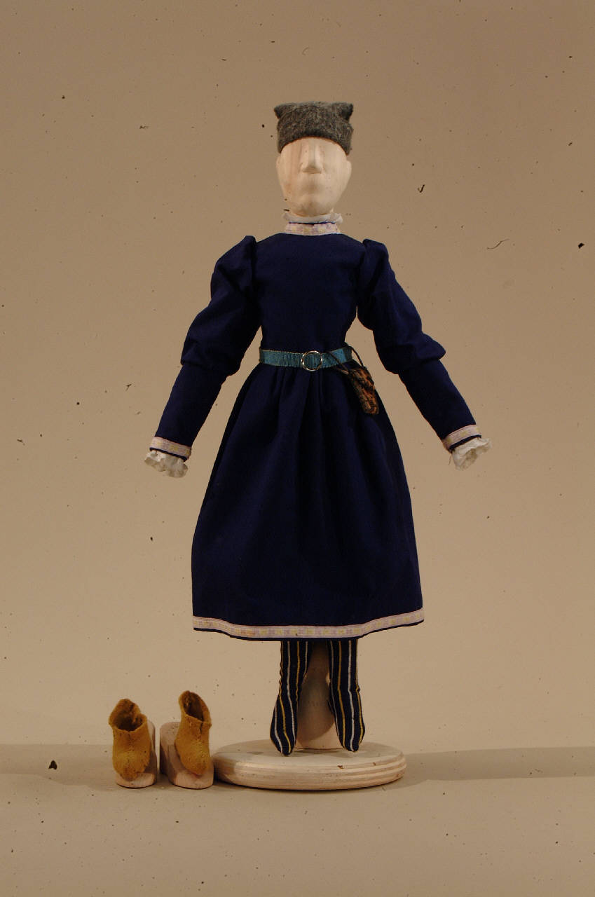 costume per popolano di foggia rinascimentale composto da veste, cintura con borsetta, cappello, scarpe e calze