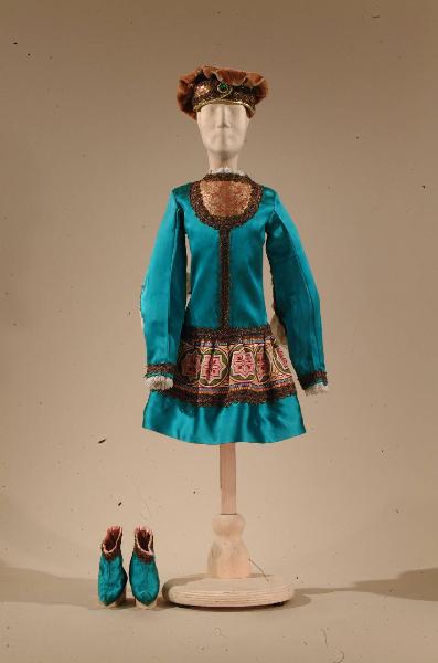 Costume percavaliere di foggia rinascimentale composto da veste, cappello e scarpe