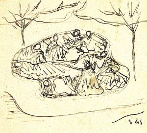 accampamento. Uomini accovacciati