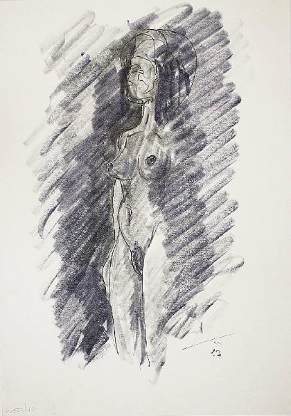 Donna in penombra. Figura femminile nuda