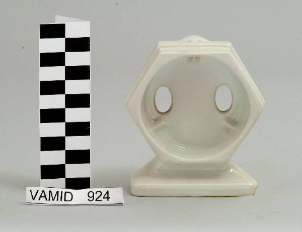 Portabicchiere di forma esagonale dotato di un solo appoggio; fondo bianco uniforme.