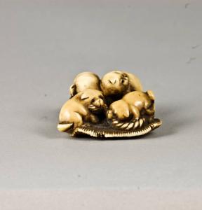 - NOTIZIE STORICO CRITICHE Una composizione simile, con una cucciolata posata su una valva di conchiglia awabi, caratterizza un esemplare - anch'esso firmato da questo stesso Masamitsu - nella collezione Trumpf nel Linden-Museum di Stoccarda (Jirka-Schmitz 2000b, p. 274, n. 577); un altro netsuke analogo è illustrato dal Davey (1974, p. 296, n. 901) che nella sua lista lo ricorda anche con il nome di Hajiwara (Davey 1974, p. 491, n. 1432); una composizione simile caratterizza un pezzo, firmato Masamitsu, nella collezione Baur di Ginevra (Coullery - Newstead 1977, n. C1077); ancora cani su conchiglia per un netsuke illustrato dal Lazarnick (1962, p. 715); lo Schwarz (1992) illustra un netsuke di questo Masamitsu con un gruppo di topi (n. 342) e un altro con un gruppo di pipistrelli (n. 353); un altro con topi e un altro ancora con cani, simile a questo Lanfranchi, entrambi firmati "Masamitsu Kikugawa", furono pubblicati dal Noetzel (1981, nn. 104, 120). Per un altro netsuke di Masamitsu nella collezione Lanfranchi si veda inv. n. 5668.