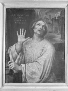 - NOTIZIE STORICO CRITICHE L'opera feceva parte in origine di una serie di tre tele del Salmeggia raffiguranti i santi bergamaschi Domneone, Domno ed Eusebia: una di esse raffigurante San Domno è conservata in collezione privata bergamasca mentre l'altra (Sant'Eusebia) si trovava nella collezione di Marco Bresciani a Bergamo (collocazione attuale sconosciuta). Nel 1833 il dipinto con San Domneone è già documentato presso Guglielmo Lochis (C. Facchinetti, 1833, p. 17)