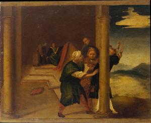 - NOTIZIE STORICO CRITICHE Opera sacra a destinazione pubblica. Si tratta della predella centrale della Pala di Santo Stefano attribuita a G. F. Bembo detto Bembino. Le altre tavole raffigurano una Madonna con Bambino e Santo Stefano (Cremona, Museo Civico, num. inv. 1280), una Testa di Santo (Gazzada, Raccolta Cagnola), la Predica di Santo Stefano (Bergamo, Accademia Carrara, num. inv. 81LC00032) e la Lapidazione di Santo Stefano (Bergamo, Accademia Carrara, num. inv. 81LC00034). La provenienza della pala dalla chiesa conventuale di Santo Stefano a Bergamo e quindi dalla chiesa di San Bartolomeo, sostenuta dagli studiosi a partire da Corrado Ricci (1912), è stata definitivamente smentita da Franco Moro nel 1986.