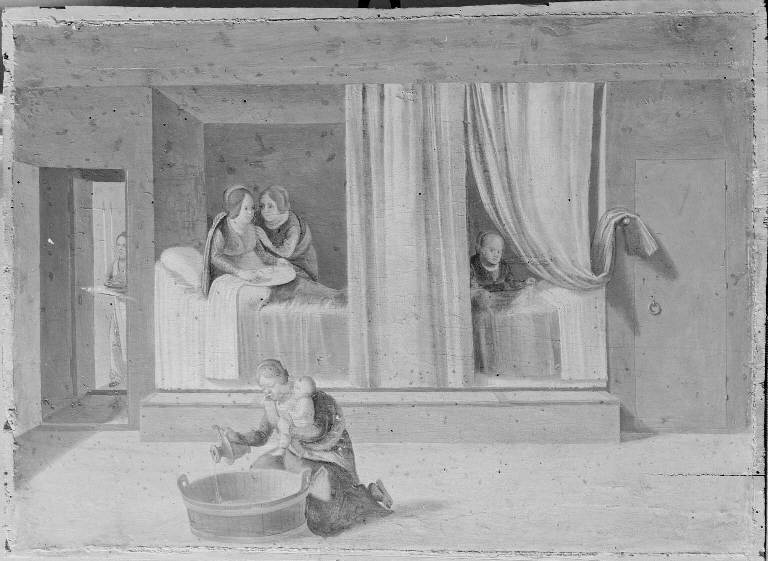 - NOTIZIE STORICO CRITICHE Opera sacra a destinazione privata. Il supporto è costituito da tre tavole in legno d'abete. In una comunicazione scritta del 1984 Mauro Lucco ritiene che si tratti di un'opera minore di G. F. Caroto. Interessante l'iconografia con la rara presenza di un letto " a due capi".
