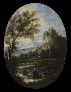 - NOTIZIE STORICO CRITICHE L'opera è stata donata alla Carrara da Graziella Gallinari che l'aveva ricevuta in eredità dal marito Franco Daina de' Valsecchi nel 1977. L'attribuzione del paesaggio al Peruzzini, collaboratore affiatato del Magnasco, è stata avanzata da D. Dotti in "Paesaggi, vedute e capricci", 2007. Neppure le figure, pur nel gusto del Magnasco, sono del maestro ma di un suo anonimo collaboratore. L'opera è in pendant con l'ovale n. 06AC01012.
