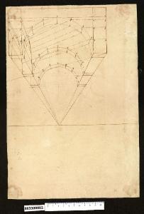 disegno eseguito con tiralinee e compasso a grafite e inchiostro bruno a penna; il supporto è carta ingiallita