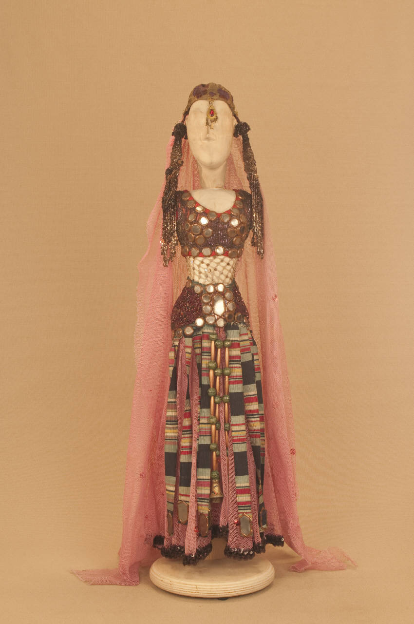 - NOTIZIE STORICO CRITICHE Costume realizzato per Il ballo "Excelsior", spettacolo che fu rappresentato la prima volta a Milano, al Teatro alla Scala, la sera dell'11 gennaio 1881. Autore del libretto e della coreografia era Luigi Manzotti, mentre Romualdo Marengo lo era della musica e Alfredo Edel delle scene e dei costumi.\nIl successo del ballo fu travolgente. Le repliche furono 103 nella stagione.\nLa versione marionettistica per la Compagnia Carlo Colla e Figli in due tempi e undici quadri fu allestita da Carlo II Colla col consenso dell'autore e presentata col titolo di "Civiltà e Progresso" nel 1895. Il titolo mutò poi nel tempo. Il primo allestimento del ballo ricordava ancora troppo l'originale scaligero. Ma fu sufficiente che lo spettacolo entrasse nella routine degli spostamenti della Compagnia perché le peculiarità del teatro marionettistico diventassero preponderanti.\nCosì l'"Excelsior" approdò al Teatro Gerolamo di Milano, quando la Compagnia ci entrò stabilmente nel 1906, proprio negli anni in cui, dopo qualche ultima apparizione, il "ballo grande" italiano, simbolico-narrativo sta tramontando sulle scene europee, divenendo unico retaggio del teatro delle marionette e, più particolarmente, della Compagnia Carlo Colla e Figli che ha continuato a riproporlo sino ad oggi, offrendo al pubblico di un secolo dopo la più vivida testimonianza del kolossal scaligero. Da nota scritta a matita sul "Giro Piazze della Compagnia Carlo Colla e Figli 1883-1912" si evince che la prima rappresentazione del ballo "Excelsior" è stata fatta a Caluso (TO) nel 1895.