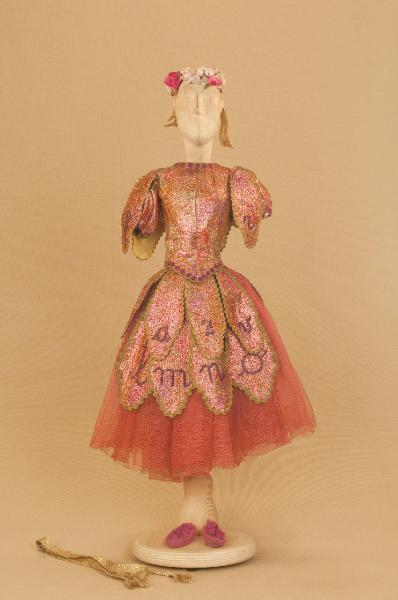 Costume allegorico da ballerina composto da gonna, corpino, acconciatura, nastri e scarpe.