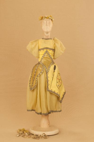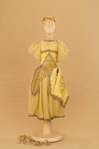 Costume allegorico da ballerina composto da veste, alta cintura, acconciatura, nastri e scarpe.