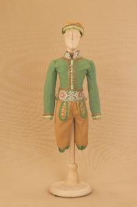 - NOTIZIE STORICO CRITICHE Costume realizzato in occasione del Festival di Spoleto del 1990 per il riallestimento del ballo "Excelsior", spettacolo che fu rappresentato la prima volta a Milano, al Teatro alla Scala, la sera dell'11 gennaio 1881. Autore del libretto e della coreografia è Luigi Manzotti, mentre Romualdo Marengo lo è della musica e Alfredo Edel delle scene e dei costumi.\nIl successo del ballo fu travolgente. Le repliche furono 103 nella stagione.\nLa versione marionettistica per la Compagnia Carlo Colla e Figli di questo in due tempi e undici quadri fu allestita da Carlo II Colla col consenso dell'autore e presentata col titolo di "Civiltà e Progresso" nel 1895. Il titolo mutò poi nel tempo. Il primo allestimento del ballo ricordava ancora troppo l'originale scaligero. Ma fu sufficiente che lo spettacolo entrasse nella routine degli spostamenti della Compagnia perché le peculiarità del teatro marionettistico diventassero preponderanti.\nCosì l'"Excelsior" approdò al Teatro Gerolamo di Milano, quando la Compagnia ci entrò stabilmente nel 1906, proprio negli anni in cui, dopo qualche ultima apparizione, il "ballo grande" italiano, simbolico-narrativo sta tramontando sulle scene europee, divenendo unico retaggio del teatro delle marionette e, più particolarmente, della Compagnia Carlo Colla e Figli che ha continuato a riproporlo sino ad oggi, offrendo al pubblico di un secolo dopo la più vivida testimonianza del kolossal scaligero. Da nota scritta a matita sul "Giro Piazze della Compagnia Carlo Colla e Figli 1883-1912" si evince che la prima rappresentazione del ballo "Excelsior" è stata fatta a Caluso (TO) nel 1895.