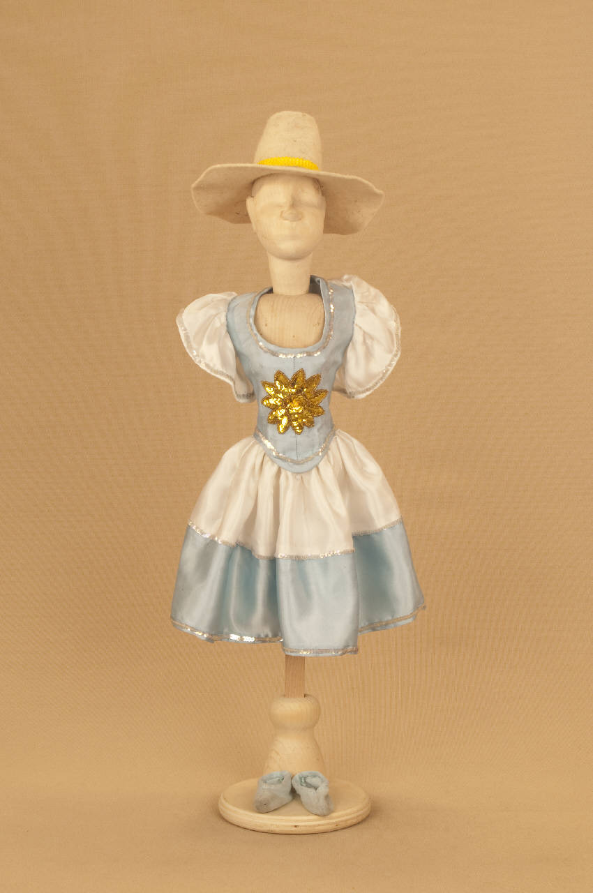 Costume fantastico da ballerina composto da veste, cappello e scarpe.