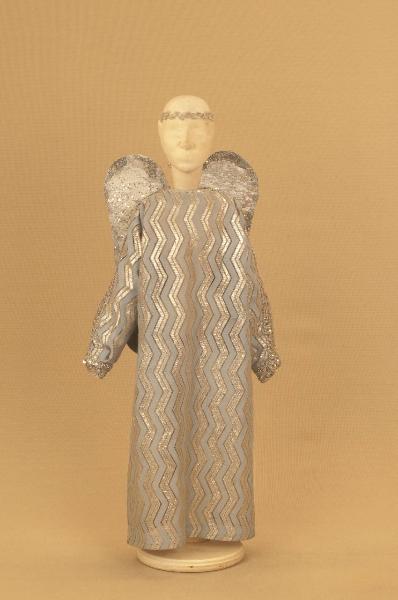 - NOTIZIE STORICO CRITICHE Il costume è stato realizzato nel 1968 da Angela Colla, per l'edizione scaligera alla Piccola Scala del ballo "Excelsior" spettacolo che fu rappresentato la prima volta a Milano, al Teatro alla Scala, la sera dell'11 gennaio 1881. I materiali usati provengono dalla Sartoria del Teatro alla Scala. Autore del libretto e della coreografia era Luigi Manzotti, mentre Romualdo Marengo lo era della musica e Alfredo Edel delle scene e dei costumi.\nIl successo del ballo fu travolgente. Le repliche furono 103 nella stagione.\nLa versione marionettistica per la Compagnia Carlo Colla e Figli in due tempi e undici quadri fu allestita da Carlo II Colla col consenso dell'autore e presentata col titolo di "Civiltà e Progresso" nel 1895. Il titolo mutò poi nel tempo. Il primo allestimento del ballo ricordava ancora troppo l'originale scaligero. Ma fu sufficiente che lo spettacolo entrasse nella routine degli spostamenti della Compagnia perché le peculiarità del teatro marionettistico diventassero preponderanti.\nCosì l'"Excelsior" approdò al Teatro Gerolamo di Milano, quando la Compagnia ci entrò stabilmente nel 1906, proprio negli anni in cui, dopo qualche ultima apparizione, il "ballo grande" italiano, simbolico-narrativo sta tramontando sulle scene europee, divenendo unico retaggio del teatro delle marionette e, più particolarmente, della Compagnia Carlo Colla e Figli che ha continuato a riproporlo sino ad oggi, offrendo al pubblico di un secolo dopo la più vivida testimonianza del kolossal scaligero. Da nota scritta a matita sul "Giro Piazze della Compagnia Carlo Colla e Figli 1883-1912" si evince che la prima rappresentazione del ballo "Excelsior" è stata fatta a Caluso (TO) nel 1895.