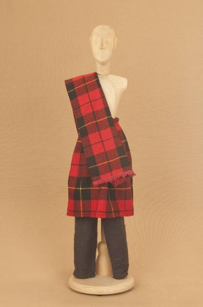 Costume da uomo scozzese composto da calzabraghe, kilt e sciarpa.