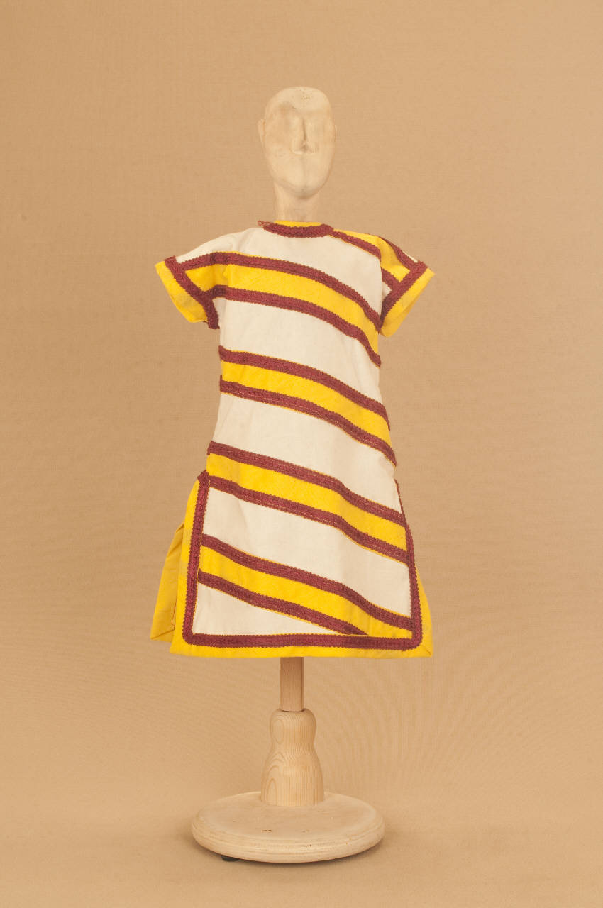 - NOTIZIE STORICO CRITICHE Il costume, che si completa con calzamaglia di cotone, con calze e cotta in maglia di ferro e con cuffia in pelle, è stato realizzato per il "Macbeth". Come altre opere di Shakespeare quali "Re Lear", "Otello", "Romeo e Giulietta", il "Macbeth" fu sempre presente nel repertorio delle Compagnie di marionette e burattini che, così, compivano la loro operazione di divulgazione in ambito popolare spostandosi di paesi in città.\nLa Carlo Colla e Figli, abbandonato il vecchio spettacolo entrato in repertorio come si rileva da un elenco delle produzioni di Carlo Colla nel Libro Mastro datato 1863-1879, ha messo in scena nel 2007 questo nuovo allestimento per lo Shakespeare Theater di Chicago, con la supervisione di Kate Bucley che ha curato la parte attorale in lingua ed i tagli al testo. Lo spettacolo, dopo la programmazione a Chicago, ha proseguito le repliche al New Victory Theater di Broadway e nel 2010 è apparso per la prima volta in Europa al Piccolo Teatro Grassi di Milano.