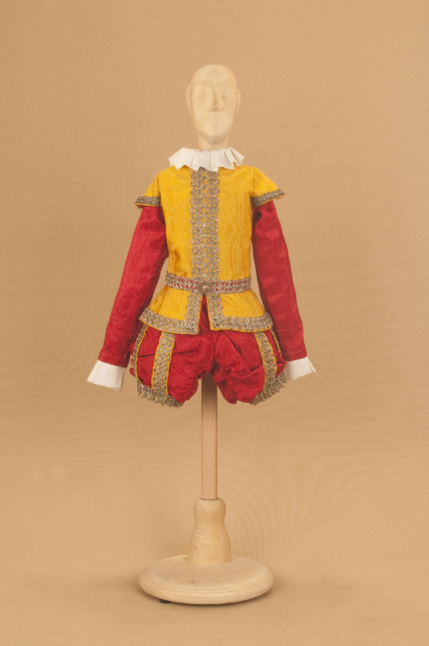 Livrea cinquecentesca da uomo composta da braghe, farsetto, cintura, calzamaglia e scarpe.