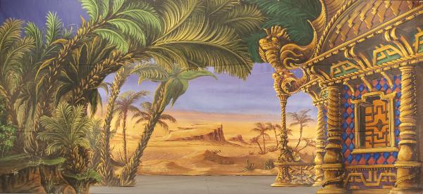 - NOTIZIE STORICO CRITICHE La scenografia è stata realizzata per la ripresa dello spettacolo "La Lampada di Aladino" che nasce come riduzione teatrale per marionette nel 1994. L¿argomento è tratto dalla fiaba "Aladino e la lampada meravigliosa", appendice della raccolta "Le Mille e Una Notte". Lo spettacolo di Eugenio Monti Colla, andato in scena in prima mondiale al Festival di Spoleto con musiche di Danilo Lorenzini, snoda il racconto in tredici quadri di ambientazione cinese come indicato nella fiaba d¿origine e narra l¿evoluzione del protagonista da giovinetto a uomo maturo attraverso vicende di carattere fantastico e simbolico.