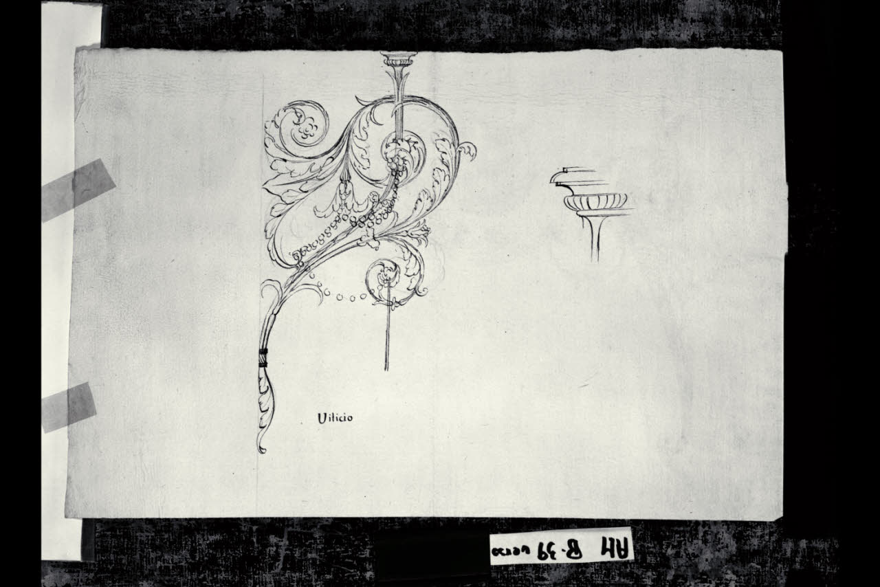 Prospetto di un torciere e dettaglio decorativo. Prospetto di un torciere e dettaglio decorativo
