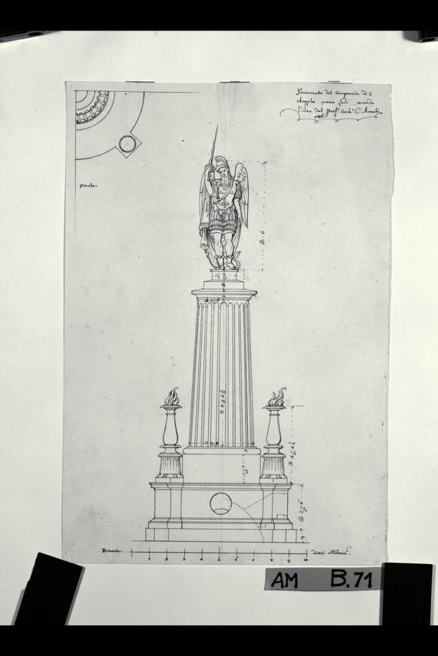 Pianta e prospetto del campanile della chiesa di S. Antonio Abate a S. Angelo Lodigiano. Pianta e prospetto del campanile della chiesa di S. Antonio Abate a S. Angelo Lodigiano