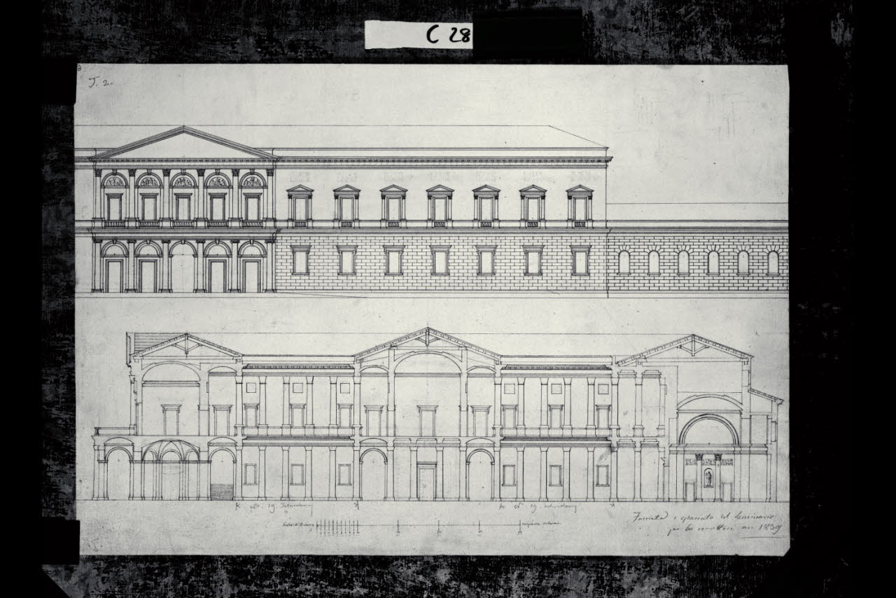 Prospetto e sezione trasversale di un seminario. Prospetto e sezione trasversale di un seminario
