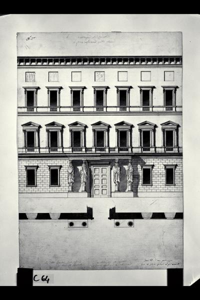 Pianta e prospetto della fronte di un palazzo. Pianta e prospetto della fronte di un palazzo