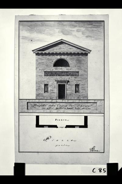 Pianta e prospetto della fronte della chiesa di S. Eustorgio ad Arcore. Pianta e prospetto della fronte della chiesa di S. Eustorgio ad Arcore
