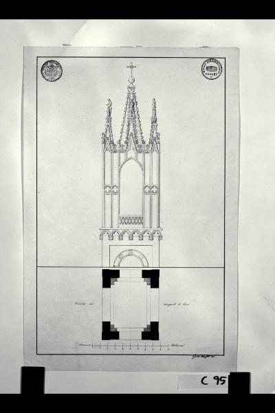 Pianta e prospetto del campanile della chiesa di S. Maria de' Servi a Milano. Pianta e prospetto del campanile della chiesa di S. Maria de' Servi a Milano