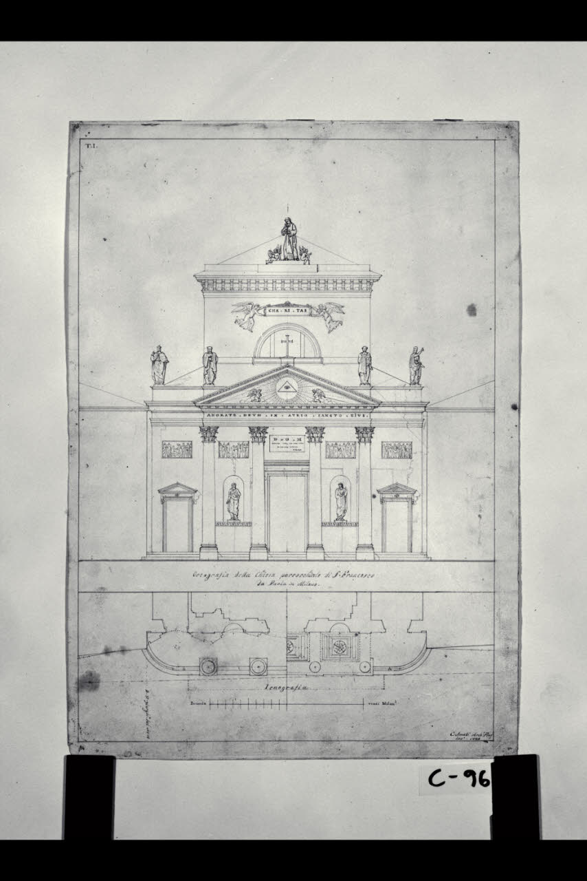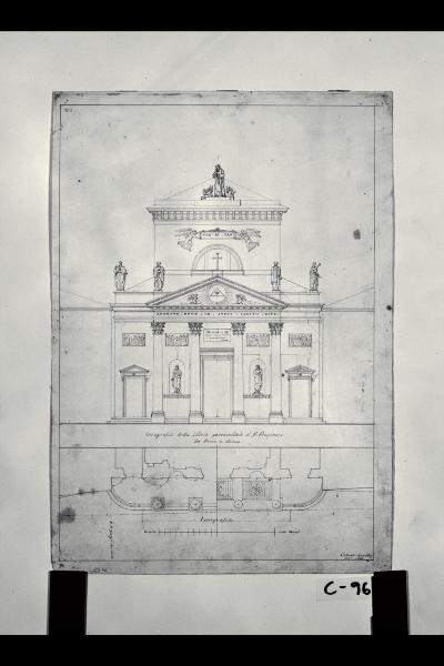 Pianta e prospetto della fronte della chiesa di S. Francesco di Paola a Milano. Pianta e prospetto della fronte della chiesa di S. Francesco di Paola a Milano