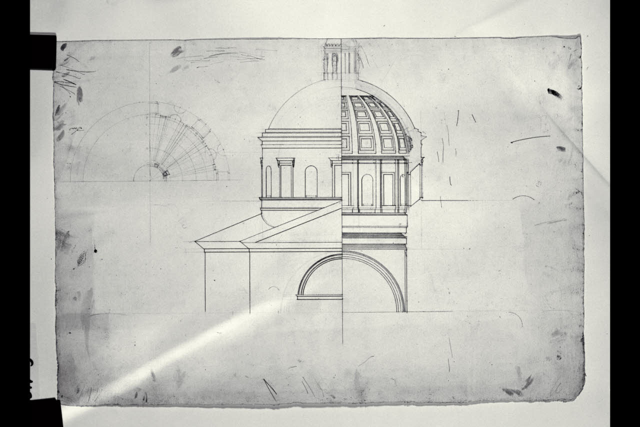 Pianta, prospetto e sezione trasversale della cupola del Duomo di Bergamo. Pianta, prospetto e sezione trasversale della cupola del Duomo di Bergamo