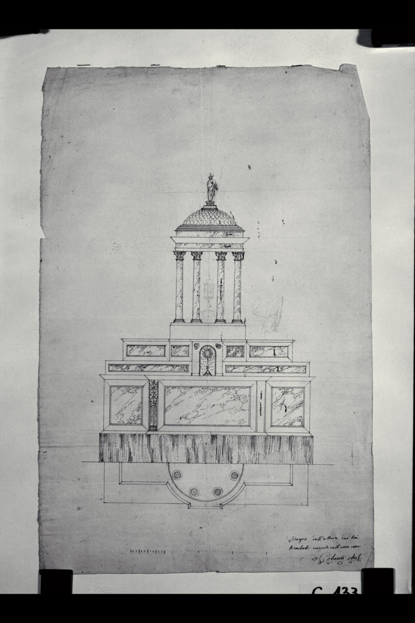 Pianta e prospetto dell'altare maggiore della chiesa dei SS. Pietro e Paolo ai Tre Ronchetti a Milano. Pianta e prospetto dell'altare maggiore della chiesa dei SS. Pietro e Paolo ai Tre Ronchetti a Milano