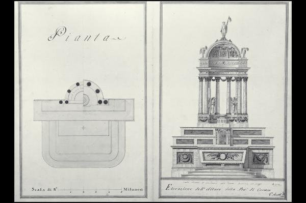 Pianta e prospetto dell'altare maggiore della chiesa della Beata Vergine Immacolata e di S. Zeno a Cassano d'Adda. Pianta e prospetto dell'altare maggiore della chiesa della Beata Vergine Immacolata e di S. Zeno a Cassano d'Adda