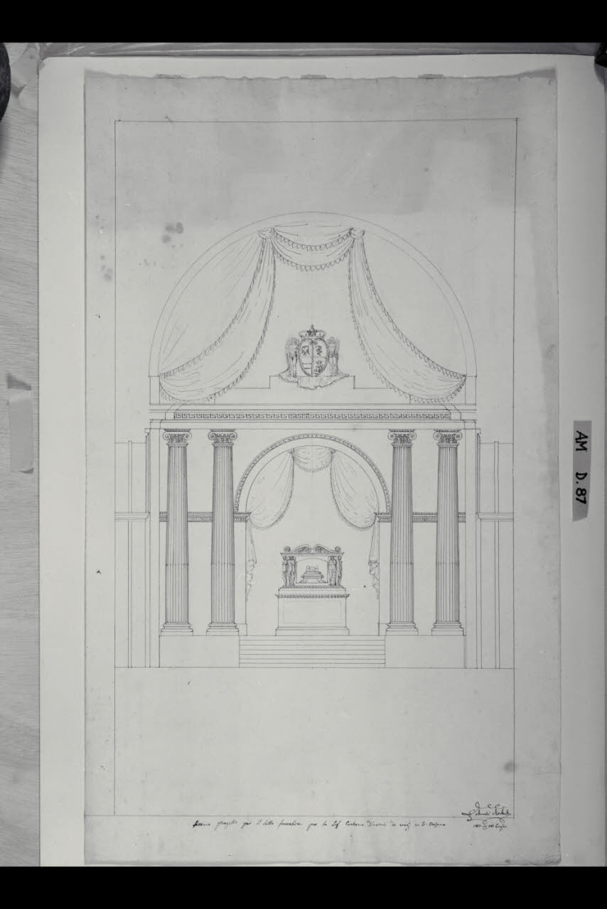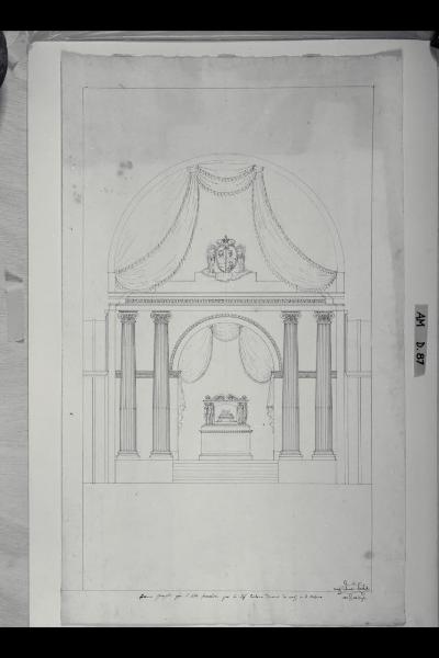 Prospetto laterale e pianta del catafalco per la contessa Marianna Durini a Milano. Prospetto laterale e pianta del catafalco per la contessa Marianna Durini a Milano