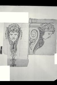 disegno eseguito a inchiostro bruno e grafite su carta bianca composta di tre fogli incollati
