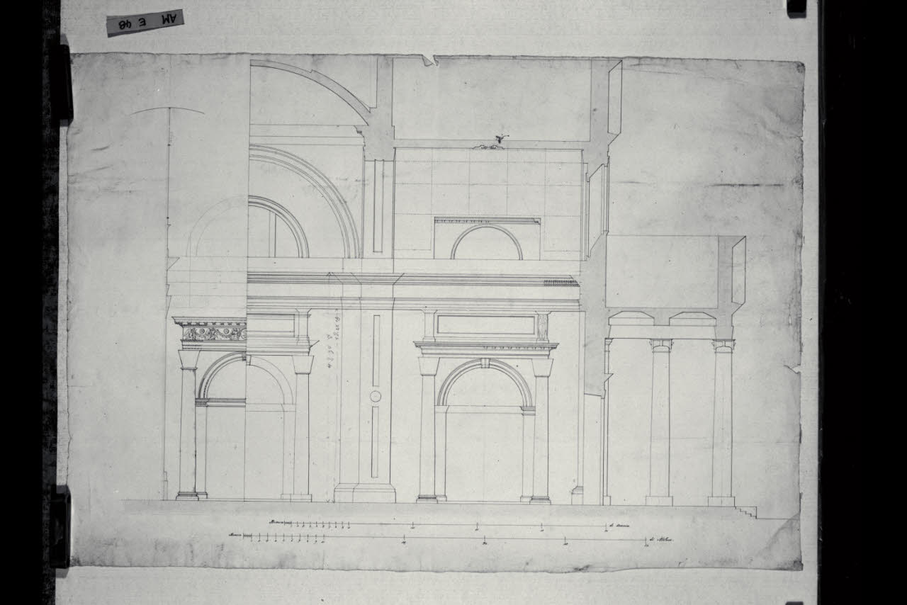 Sezione longitudinale della chiesa di S. Vittore a Calcio. Sezione longitudinale della chiesa di S. Vittore a Calcio