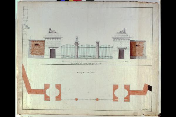 Pianta e prospetto della Porta S. Vito a Pavia. Pianta e prospetto della Porta S. Vito a Pavia