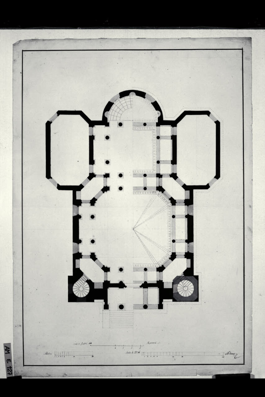 Pianta di chiesa con pronao ionico e torri laterali. Pianta di chiesa con pronao ionico e torri laterali