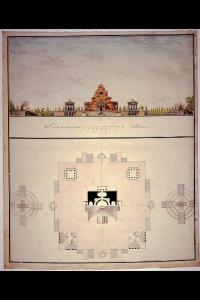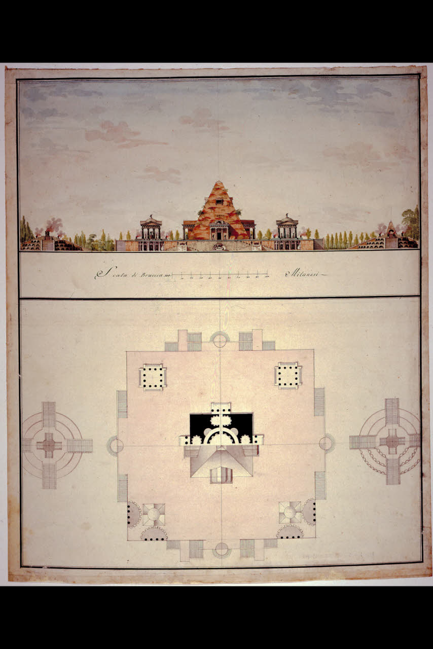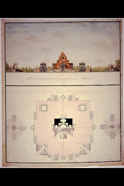 Pianta e prospetto di un cimitero. Pianta e prospetto di un cimitero