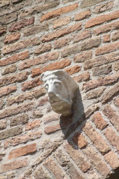 Testa leonina che, visto il profilo superiore piatto e quadrangolare, serviva come sostegno di un elemento architettonico.