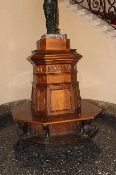 Panca di forma poligonale che si sviluppa intorno allo schienale centrale che serve anche da supporto per una statua. La seduta della panca è priva di decori, ma è sostenuta da zampe leonine, mentre lo schienale è caratterizzato da specchiature quadrangolari definite da modanature e da una alta cornice modanata ed aggettante che ne conclude il profilo superiore.