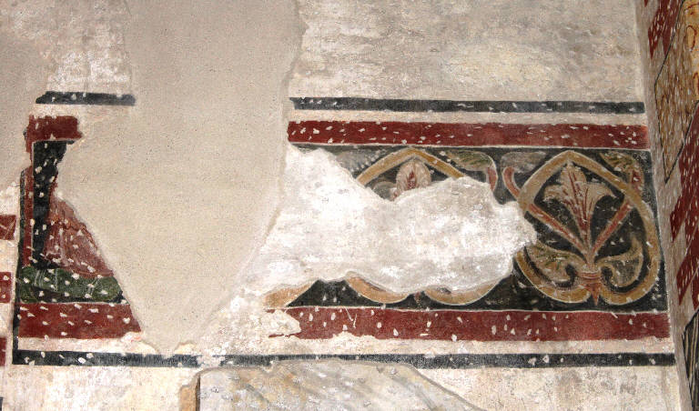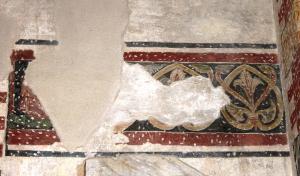 - NOTIZIE STORICO CRITICHE La decorazione pittorica che interessa la parete settentrionale, quella occidentale e quella meridionale della Sala degli Affreschi è venuta alla luce tra marzo 2001 e luglio 2002 quando, durante i lavori di sostituzione della vecchia tapezzeria che ricopriva le pareti della stanza, vennero trovate tracce di affreschi sempre più estese. Tolta interamente la tappezzeria, le pareti mostrarono ampie superfici dipinte pertineti a due campagne decorative diverse. La prima databile al XIV secolo, la seconda al XVII.