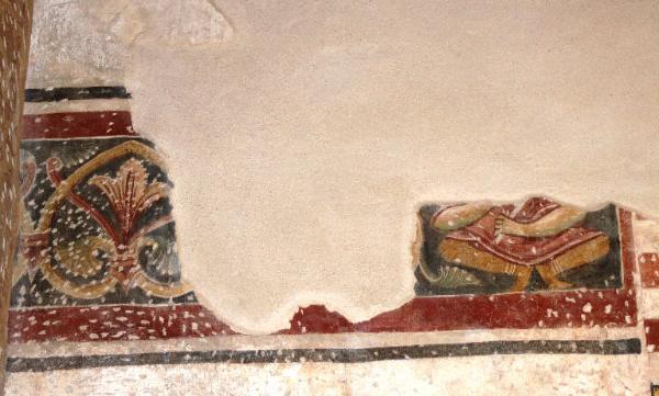 - NOTIZIE STORICO CRITICHE La decorazione pittorica che interessa la parete settentrionale, quella occidentale e quella meridionale della Sala degli Affreschi è venuta alla luce tra marzo 2001 e luglio 2002 quando, durante i lavori di sostituzione della vecchia tapezzeria che ricopriva le pareti della stanza, vennero trovate tracce di affreschi sempre più estese. Tolta interamente la tappezzeria, le pareti mostrarono ampie superfici dipinte pertineti a due campagne decorative diverse. La prima databile al XIV secolo, la seconda al XVII.