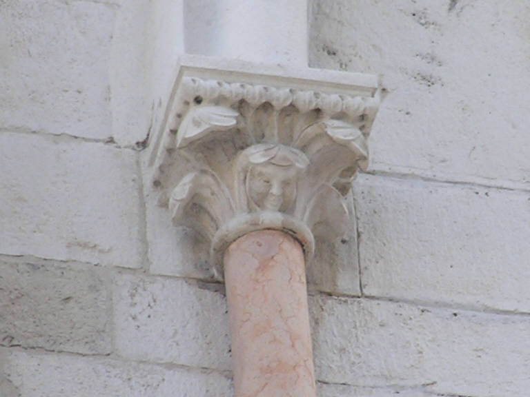 Capitello a tronco di cono figurato, con abaco quadrato sottile.