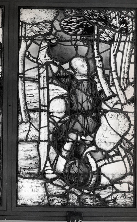 - NOTIZIE STORICO CRITICHE fa parte die rifacimenti cinquecenteschi della vetrata dell'Antico testamento, mostra caratteri compatibili con la pittura di Biagio Arcimboldi.