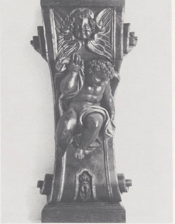 Mensola con cherubino, putto in posa da telamone che sorregge il cherubino soprastante.