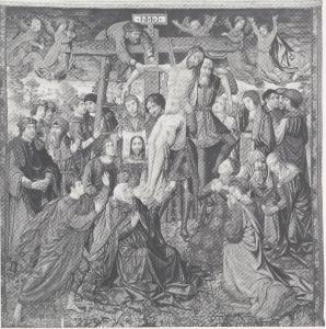 raffigura a scenala deposizione dalla croce i numerosi astanti sono in abiti quattrocenteschi.