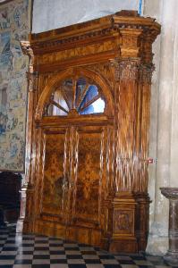 - NOTIZIE STORICO CRITICHE L'opera è assai vicina, stilisticamente, alle due monumentali bussole poste in corrispondenza dei due ingressi principali: potrebbe quindi essere stata realizzata anch'essa nella bottega di Giuseppe Alari, nello stesso giro d'anni, attorno all'ultimo quarto del XVIII secolo.