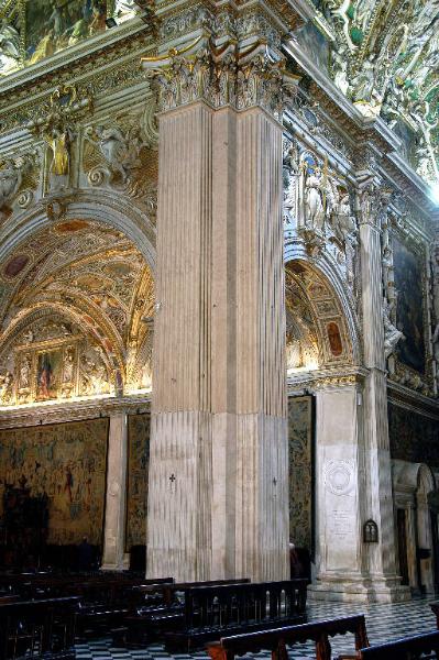 - NOTIZIE STORICO CRITICHE La decorazione dei pilastri angolari della crociera è stata probabilmente realizzata da Lorenzo Porta, stuccatore originario di Osteno, sul lago di Lugano, tra il 1603 e il 1604: in quegli anni, infatti, i libri contabili della Basilica registrano pagamenti per i lavori che interessarono lesene e pilastri posti nell'area dell'abside e della crociera a Lorenzo, appunto, e al figlio Girolamo (Cortesi Bosco, in "I pittori bergamaschi...Il Seicento", vol. II, pp. 92-94, note 5 e 6)