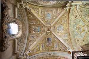 - NOTIZIE STORICO CRITICHE Nei libri contabili della Basilica non si trova alcuna menzione riguardo a questi affreschi raffiguranti episodi della vita di Gesù Cristo, eseguiti probabilmente da un decoratore specializzato attivo nella bottega di Lorenzo Porta, stuccatore originario di Osteno sul lago di Lugano che eseguì tra il 1585 e il 1587 la decorazione plastica della navatella (Cortesi Bosco, in "I pittori bergamaschi...Il Seicento", vol. II, pp. 92-94, nota 6).